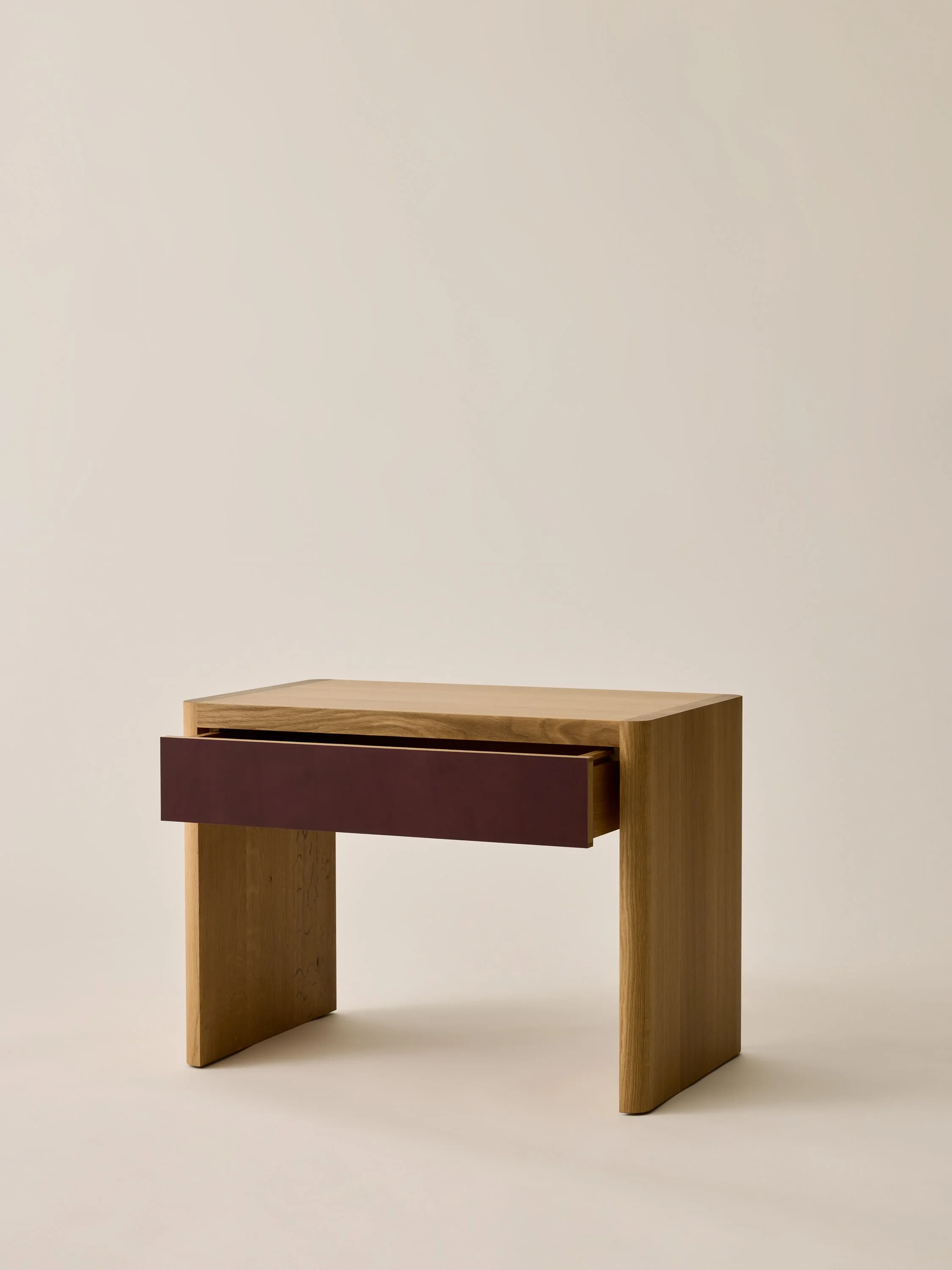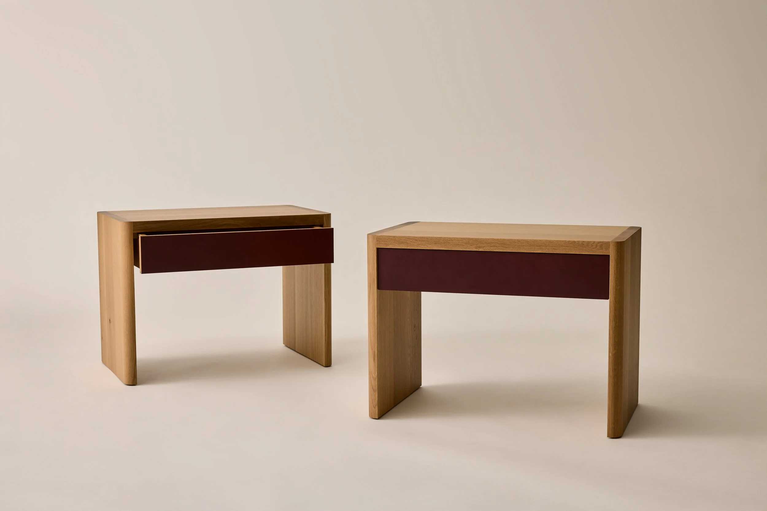 Francis Nightstand in Natural White Oak and Oxblood Leather