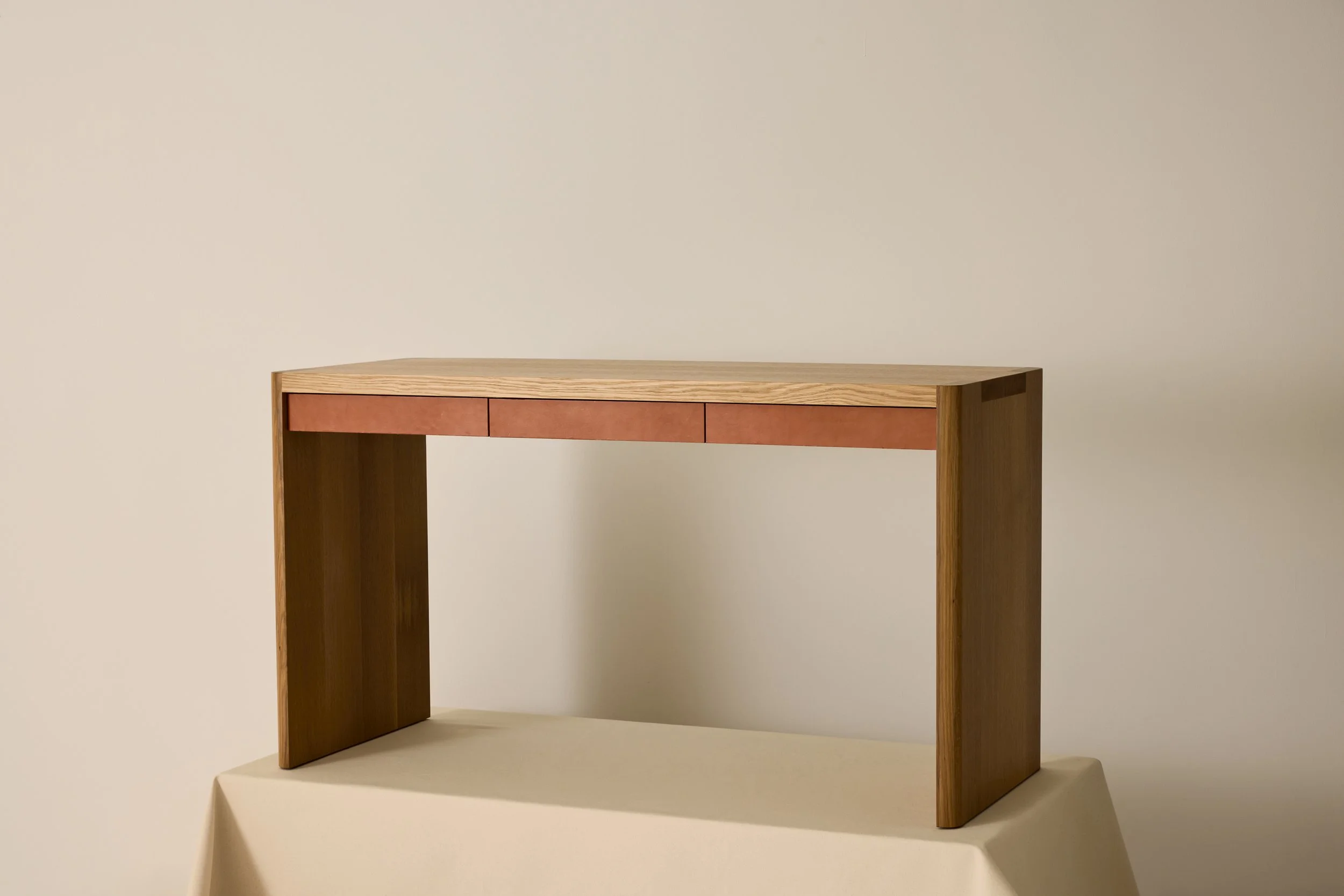 Custom Francis Desk in Natural White Oak and Saddle leather