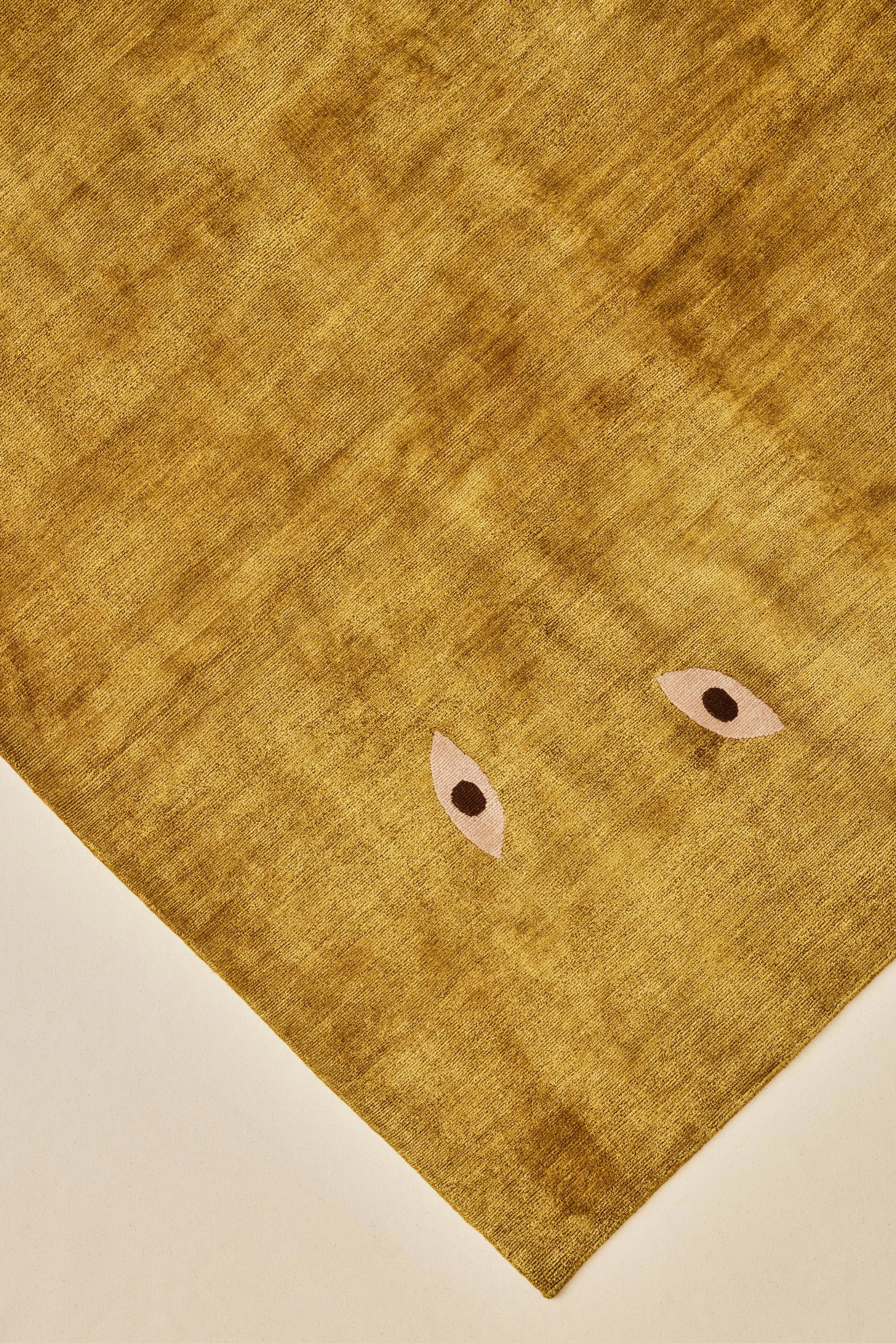 Detail of Eden Rug in Celery Cashmere with Silver & Gold Eyes