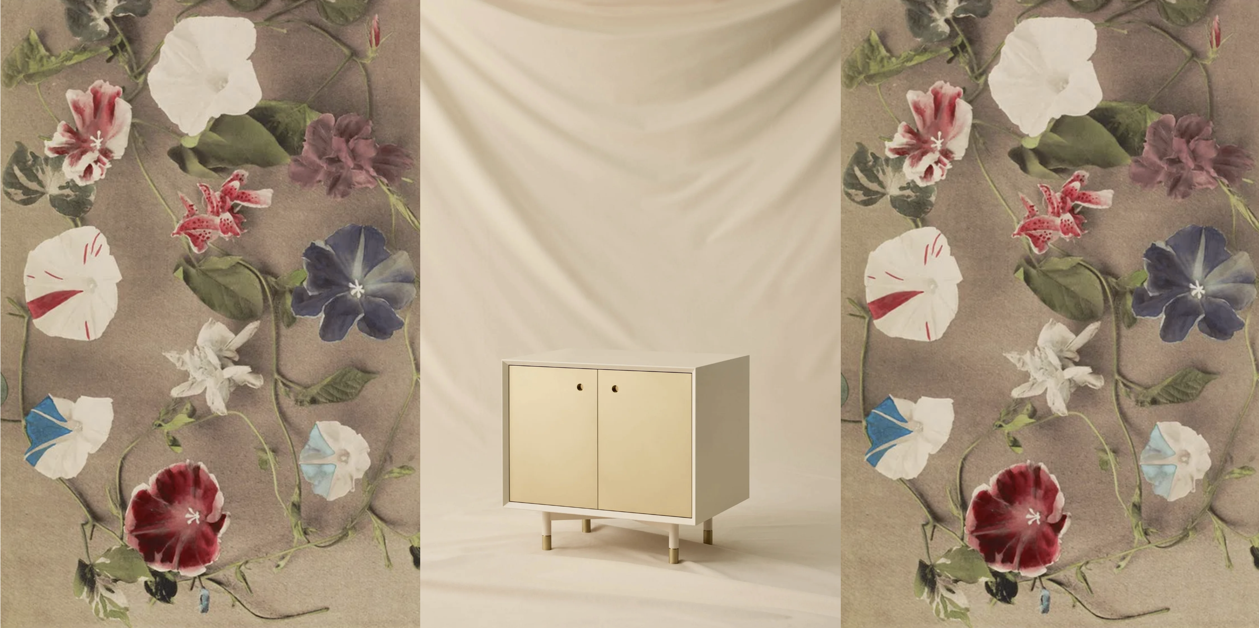 Phillips Nightstand (center) collaged with vintage Peony photographs