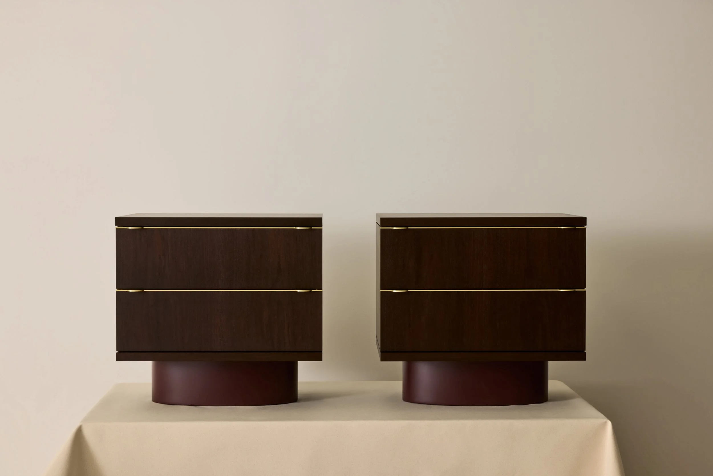 Pair of Phillips Nightstand in Walnut with Clay lacquer feet