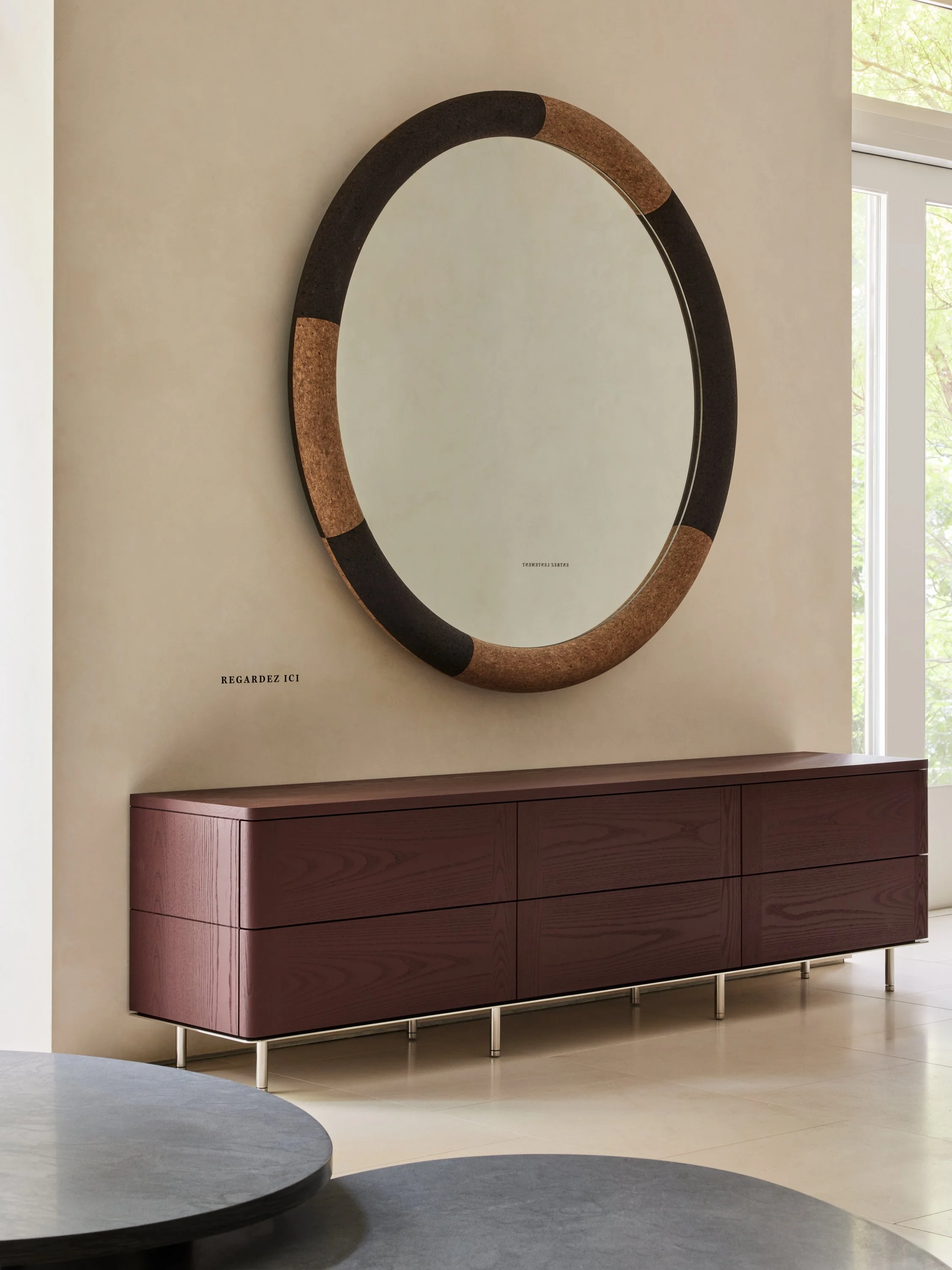 Ritter Media Height Dresser in Clay lacquer and Satin Stainless Steel base with Eileen Mirror